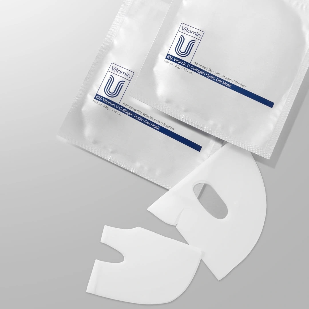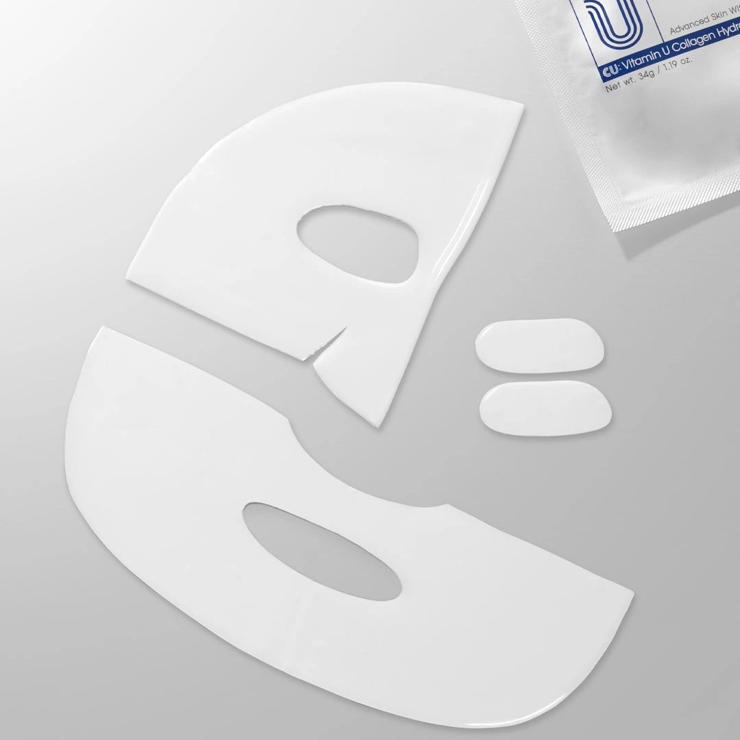 CUSKIN Vitamin U Collagen Hydro Gel Mask – Dvigubo poveikio hidrogelio kaukė odos stangrinimui ir švytėjimui, 34g.